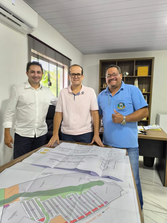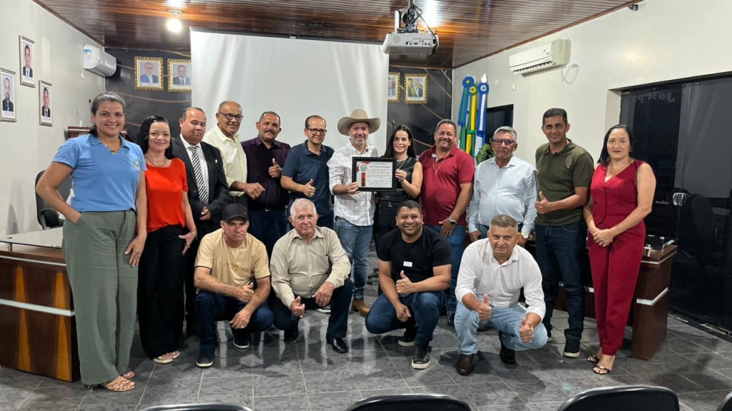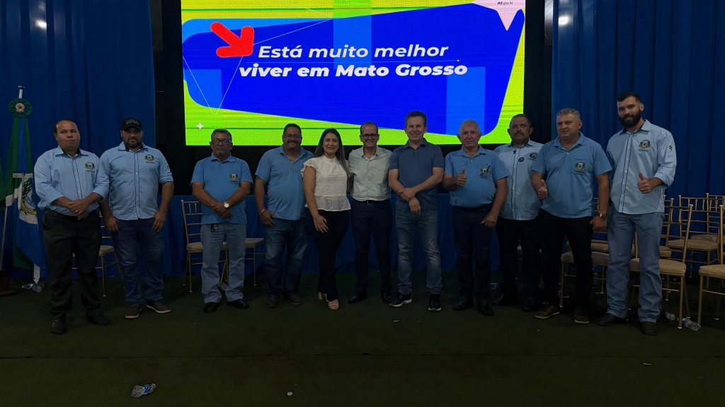 Presidente da Câmara Municipal, Valmir Leite, junto aos demais vereadores, participou do evento em que o governador Mauro Mendes assinou contratos e entregou ações importantes para o desenvolvimento de Nova Marilândia