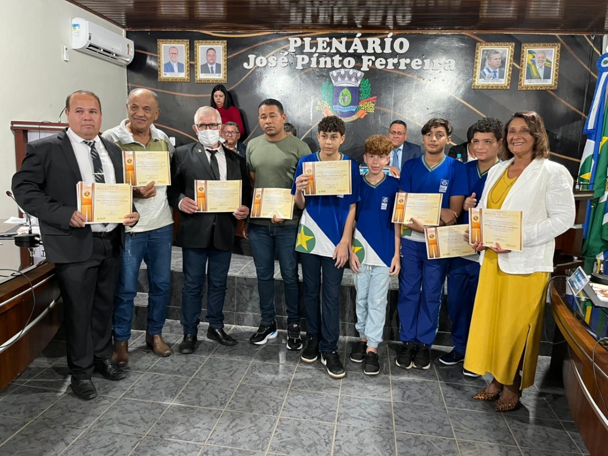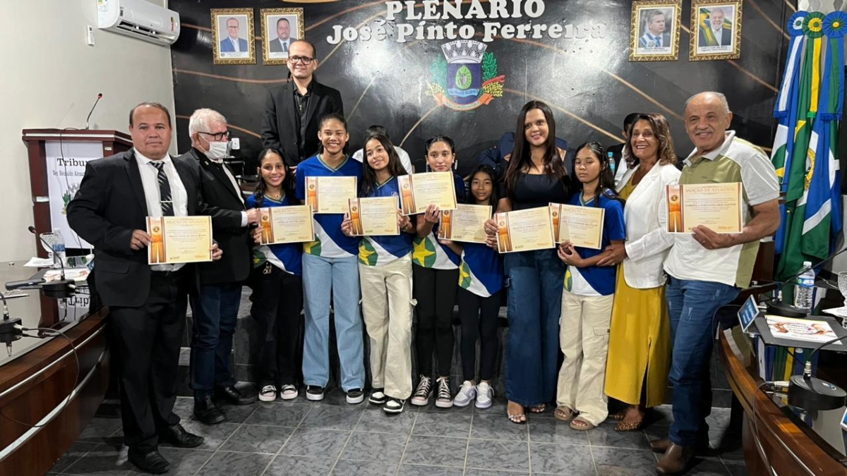 Foram homenageados os responsáveis pela implantação e execução do Programa PM Mirim, a coordenação de esportes, a equipe técnica e as seleções feminina e masculina dos Jogos Escolares.